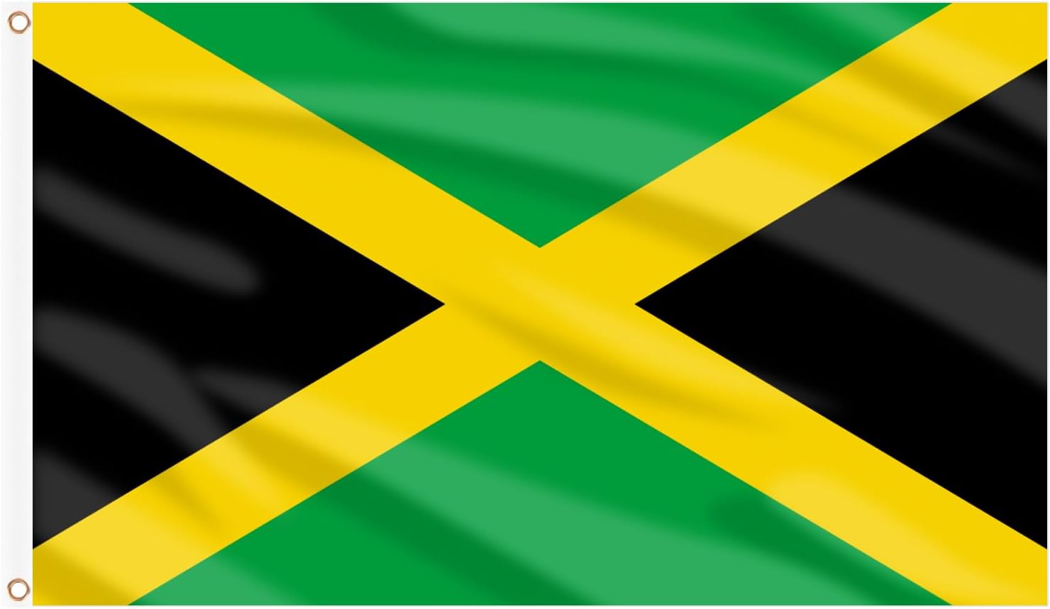 - 【Specification】: The package includes 1 Pc Jamaica flag with the size of approx 90 x 150 cm / 3 x 5 ft. Double-stitched all around the edge and strengthened by a canvas header and two brass grommets.